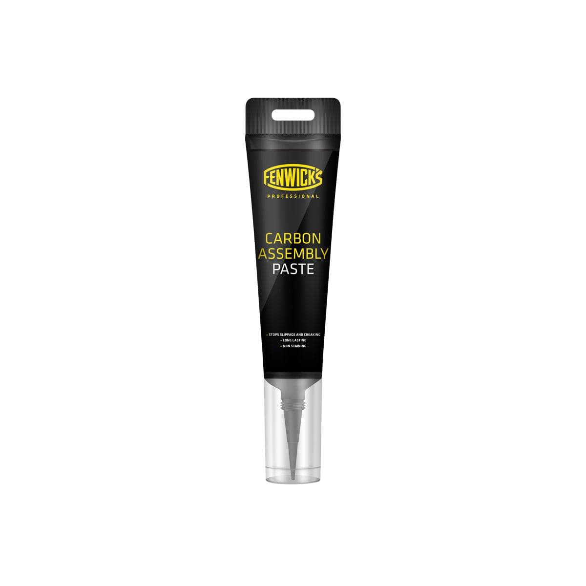 Fenwick’s Professional Carbon Assembly Paste increases the grip of carbon-to-carbon or carbon-to-metal parts, helping prevent slippage in use. Highly pliable beads deform and grip carbon when under pressure, allowing the correct torque settings to be used on delicate carbon fibre components. The 80ml tube packaging negates the need for a special applicator, as it includes a pinpoint nozzle for accurate application and minimal wastage.