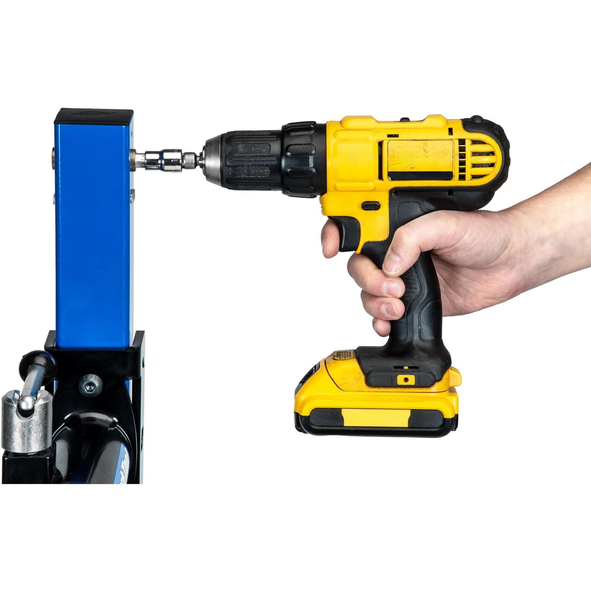 - Height can also be adjusted using a common battery-operated drill with 10 mm socket for truly effortless lifting of heavy bicycles