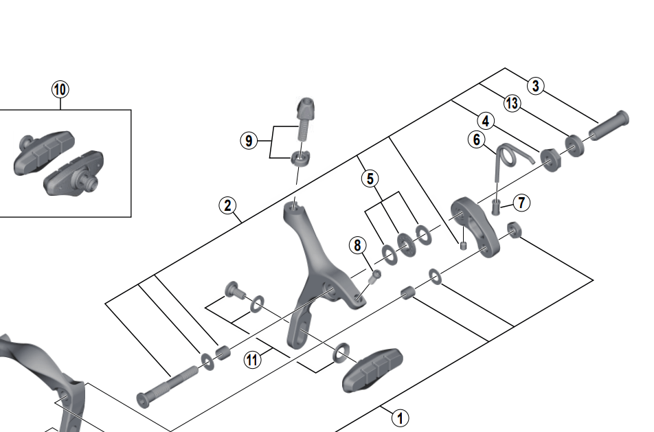 Shimano Spares BR-4700 front pivot assembly bolt 50.4 mm; pivot nut 10.5 mm