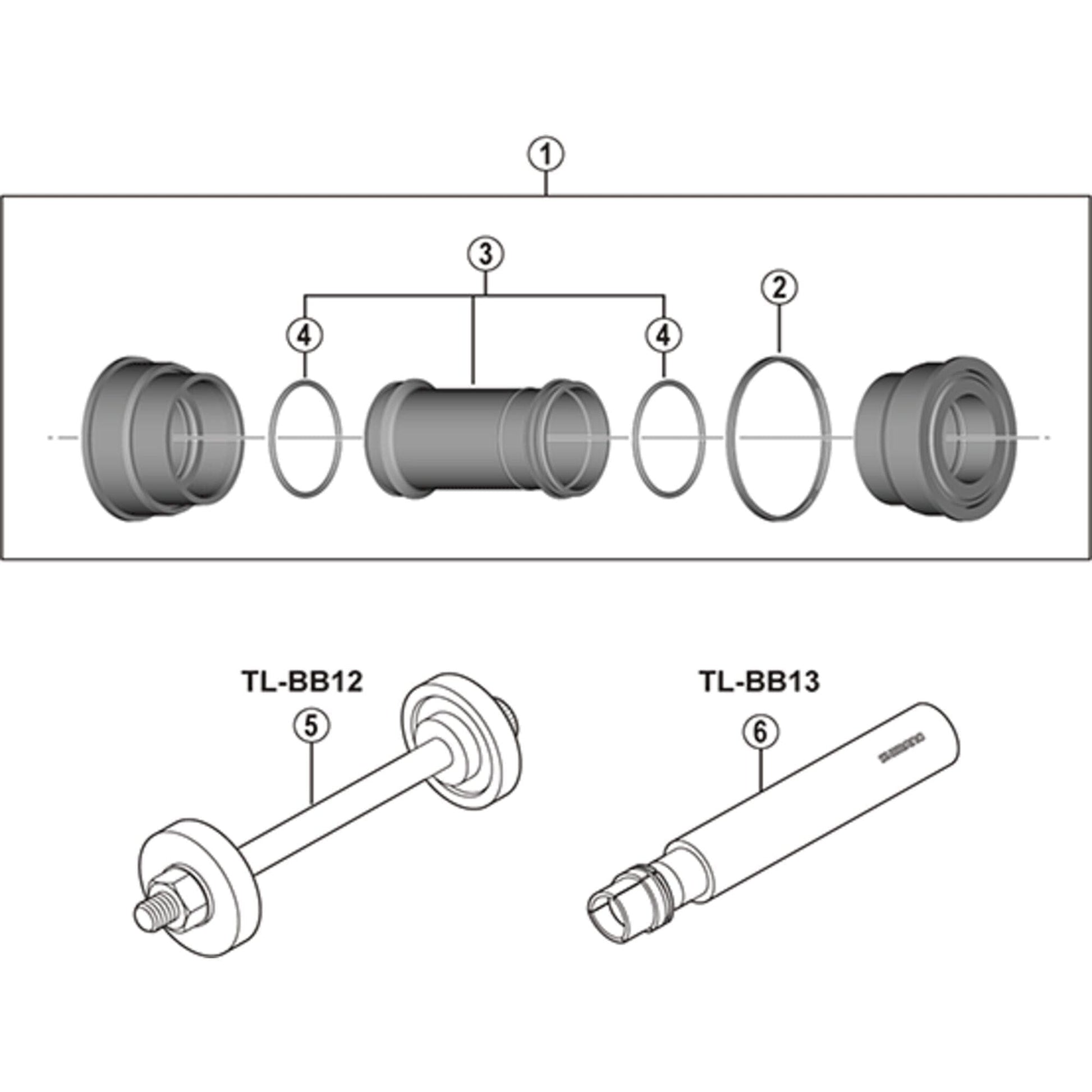 - Complete press-fit bottom bracket assembly for Shimano HollowTech II MTB cranks