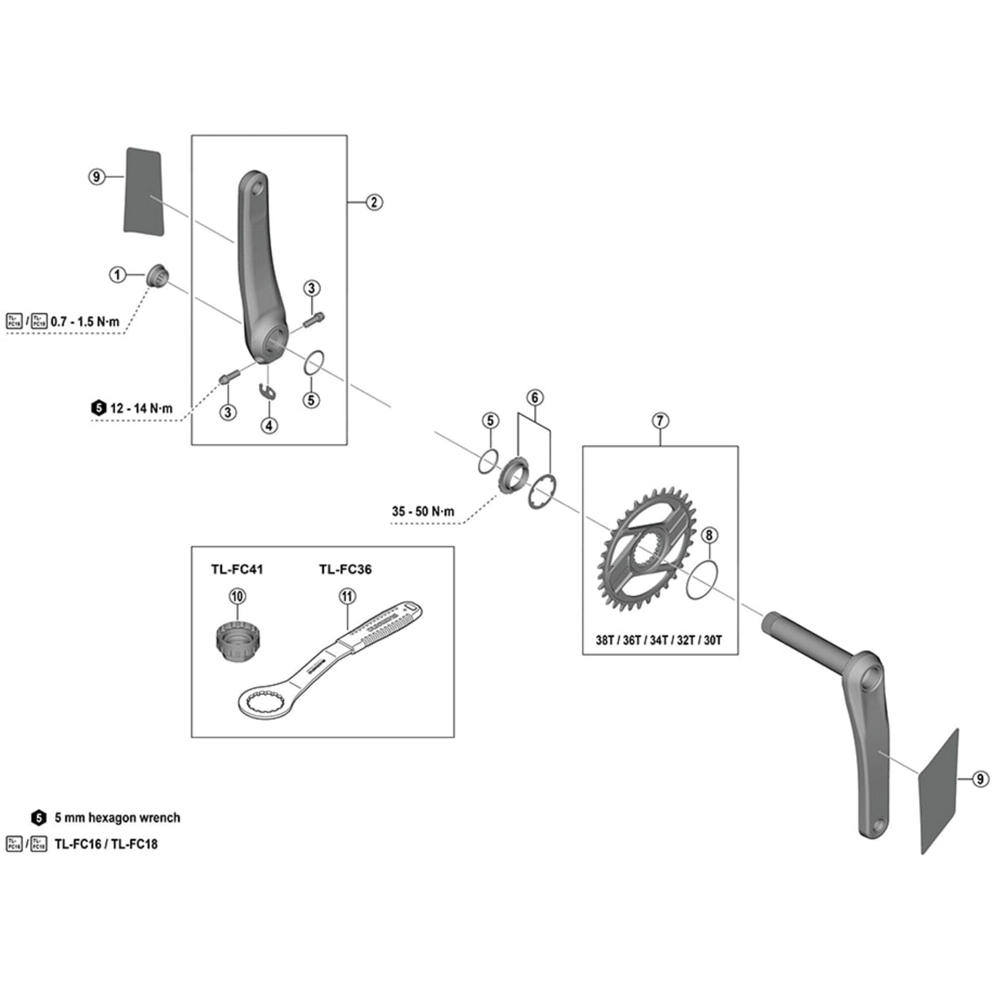 Shimano Spares FC-M9200 left hand crank arm unit with protection sticker; 170 mm test