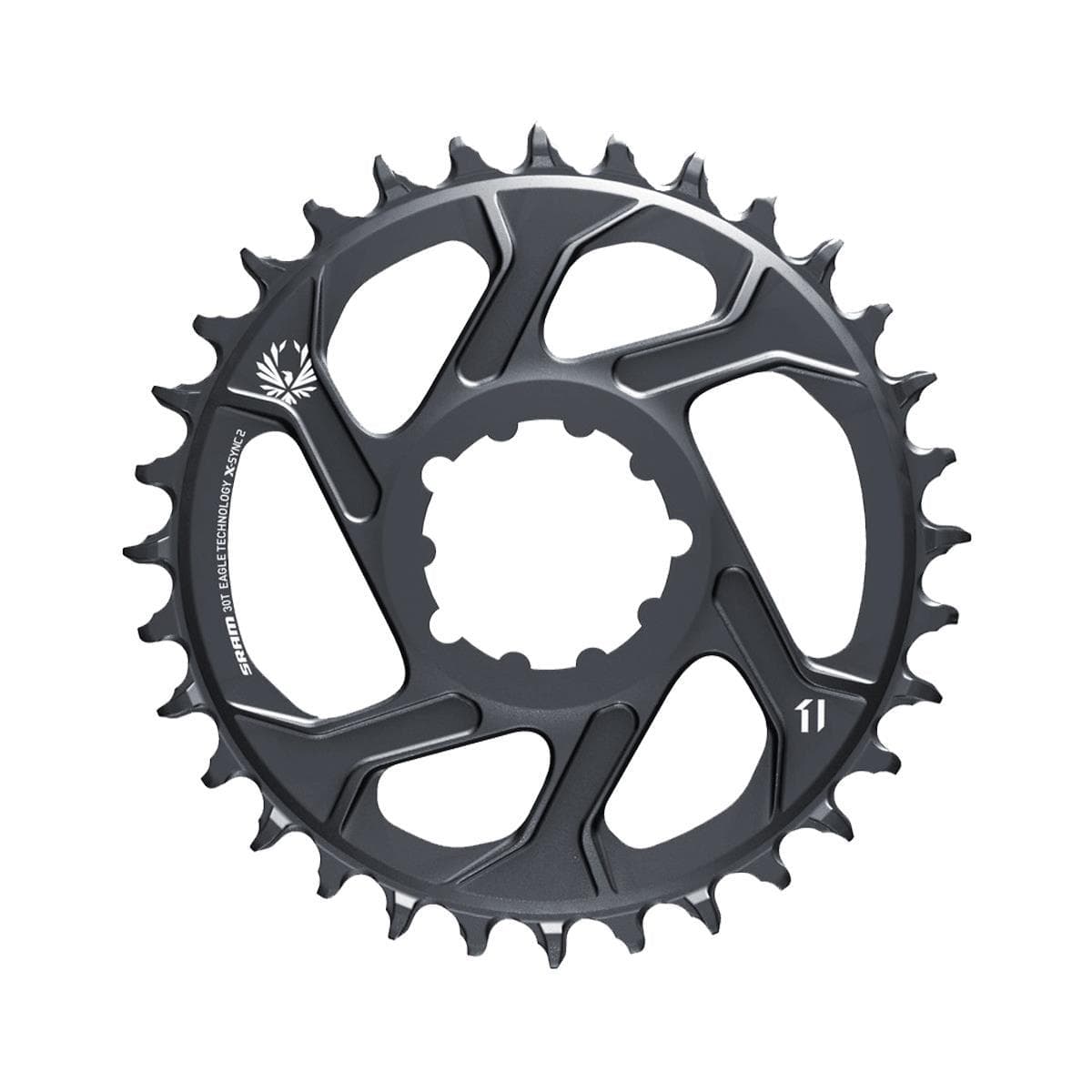 Eagle™ Technology creates the smoothest, quietest, longest lasting and most efficient drivetrains we’ve ever made. The radical new look and feel of our X-SYNC™ 2 Eagle™ chainring is a direct result of SRAM drivetrain engineers studying the performance and wear characteristics of thousands of X-SYNC™ chainrings. The longer, positive-rake tooth shape has been designed to work perfectly with the new Eagle™ chain to increase chain retention and overall pedaling efficiency, while decreasing friction, noise and wear.