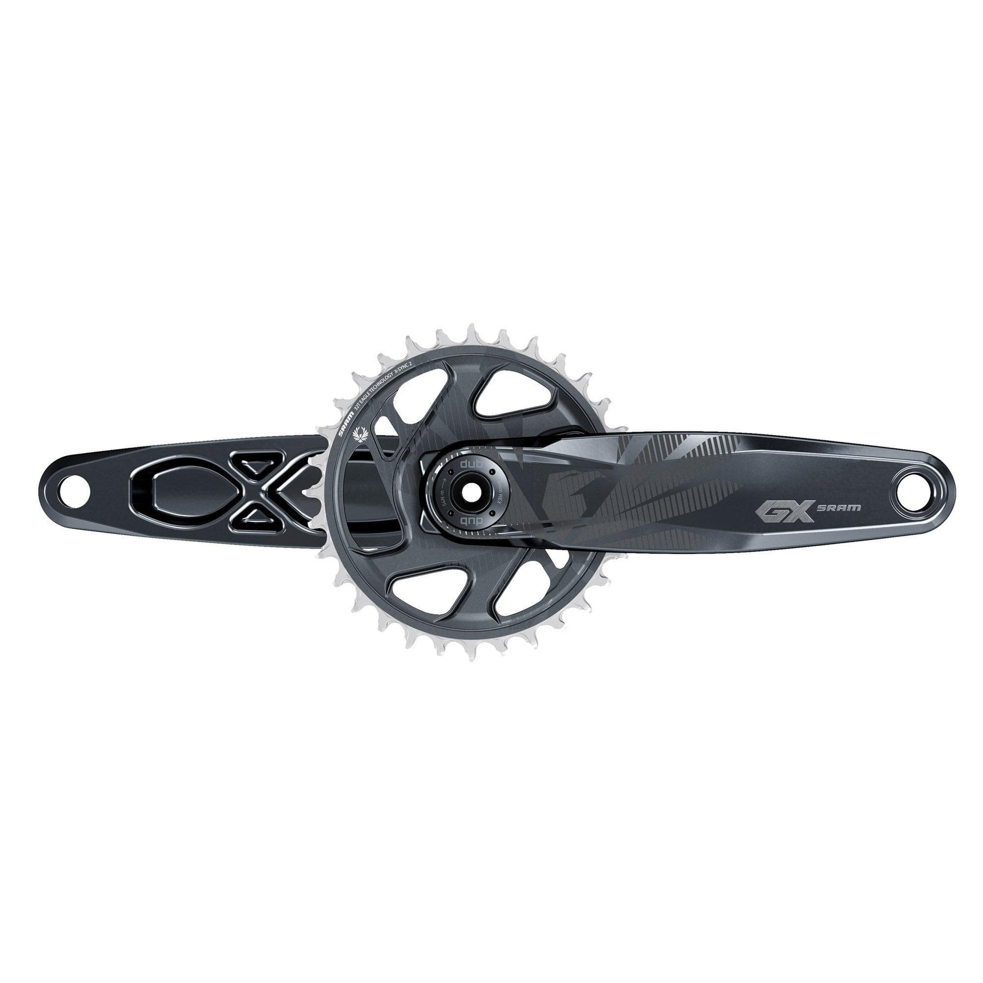 Some riders test their limits more than others. For these riders, the GX Eagle DUB crankset allows them to go all in, every day they ride. The best aluminum crankset we make, engineered to deliver consistent performance every ride. Featuring our X-SYNC 2 tooth profile chainring for complete chain control. Each tooth's thickness is toleranced and controlled to work seamlessly with the chain's inner and outer links. DUB technology’s patented spindle design and bottom bracket provides a uniform approach to fitment, better sealing and forward and backward compatibility. Simply put, the forged aluminum GX Eagle DUB crankset is the no frills choice of riders who know.