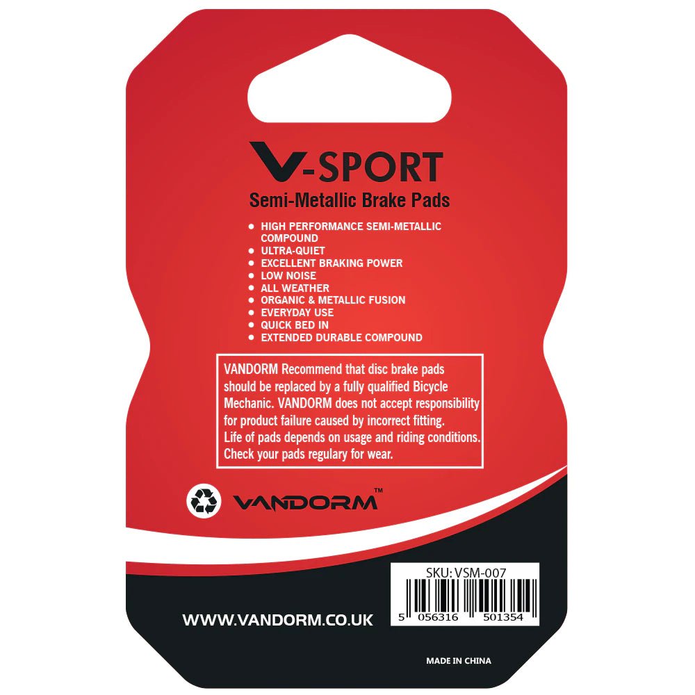 Vandorm V-SPORT Semi Metallic Disc Pads have been custom manufactured to meet and exceed braking standards of today’s riders.